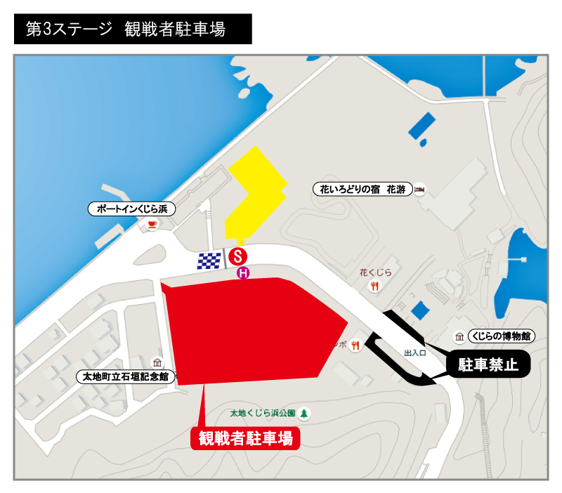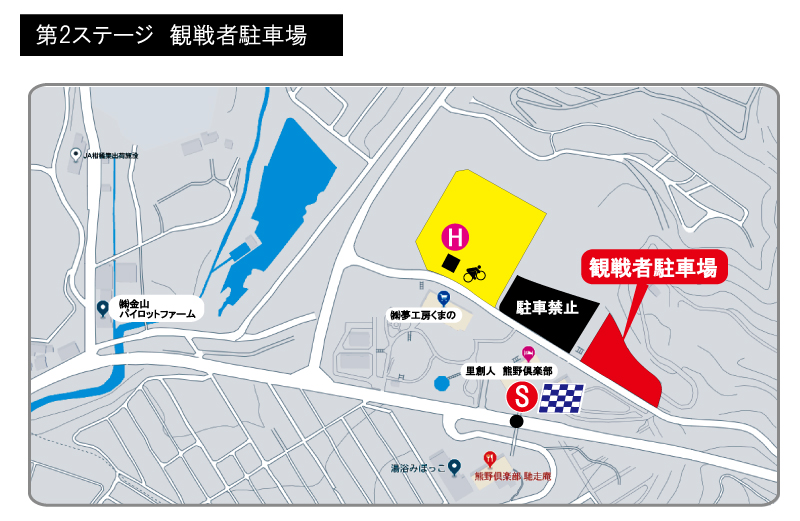 | 新宮市役所前からのパレードスタート(移動)を行い、正式スタートは熊野川町さつき温泉前からとなる。 熊野川温泉さつきをスタートし小口中学校の前を通り県道に一回出て再度小口に入る、小口一周16.3キロを7周するレースが始まる。このコースは高低差こそ25mと少ないが、赤木川の横を走るコースは細かなアップダウンの連続で気が抜けない。特に小口トンネルを抜けてから、村中の道路は道幅が狭く、見通しも効かないため、有力選手は前方の位置を取ろうとスピードが上がる。また、KOM手前のコースは道幅が狭い激坂となっており、この辺りが勝負所となる。 熊野川温泉さつき前より見る最終周回のデッドヒートは最大の見所である。 |